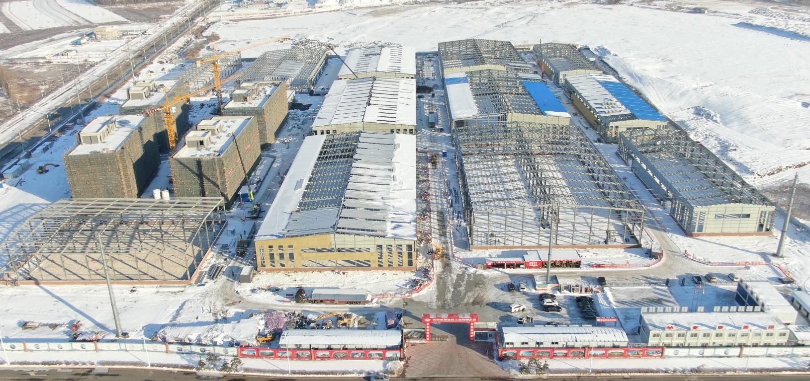 长春国际物流经济开发区新材料产业园区建设项目位于长春国际物流经济开发区英泰大路以南、东翔大街以东区域;该项目共计 23 栋单体(12栋厂房、7 栋配套用房、2 栋办公楼、2 栋宿舍),共分为两个标段,其中一标段共计 9 栋楼,总建筑面积 35481.6 ㎡;二标段 14 栋楼,总建筑面积为 35486.86 ㎡;项目总面积 70979 ㎡,总产值约1.98 亿元。项目已于 2020 年 6 月 25 日开工,其中一标段计划于 2020 年 12 月 31 日完成工程竣工验收,交付使用;二标段计划于 2021 年 9 月 31日竣工。