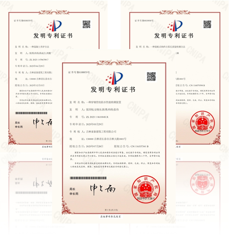 这两项发明专利的成功,并未偶然,而是亚泰建筑长期对科技创新坚持不懈的结果。亚泰建筑深入探索建筑行业前沿技术,致力于解决行业中的痛点和难点问题。截至目前建筑公司累计取得15项专利,其中发明专利6项,实用新型专利9项、施工工法3项、参编地方标准3项、辽宁省科学技术二等奖励1项。2022年被认定为吉林省高新技术企业。