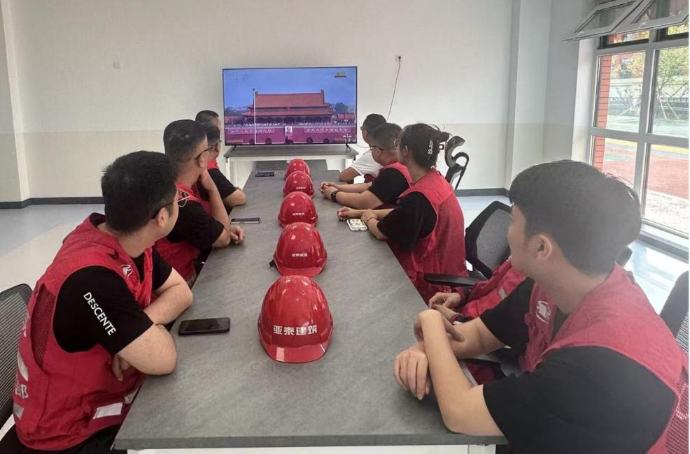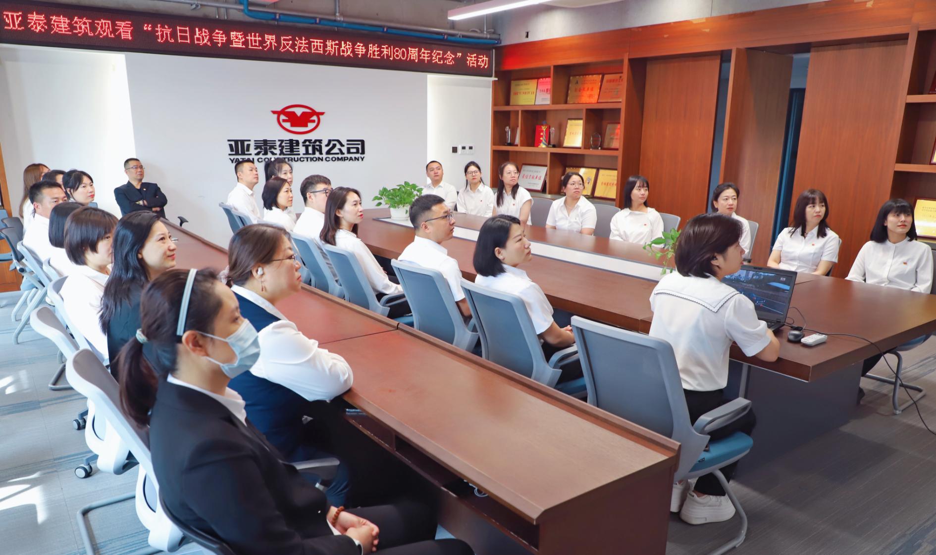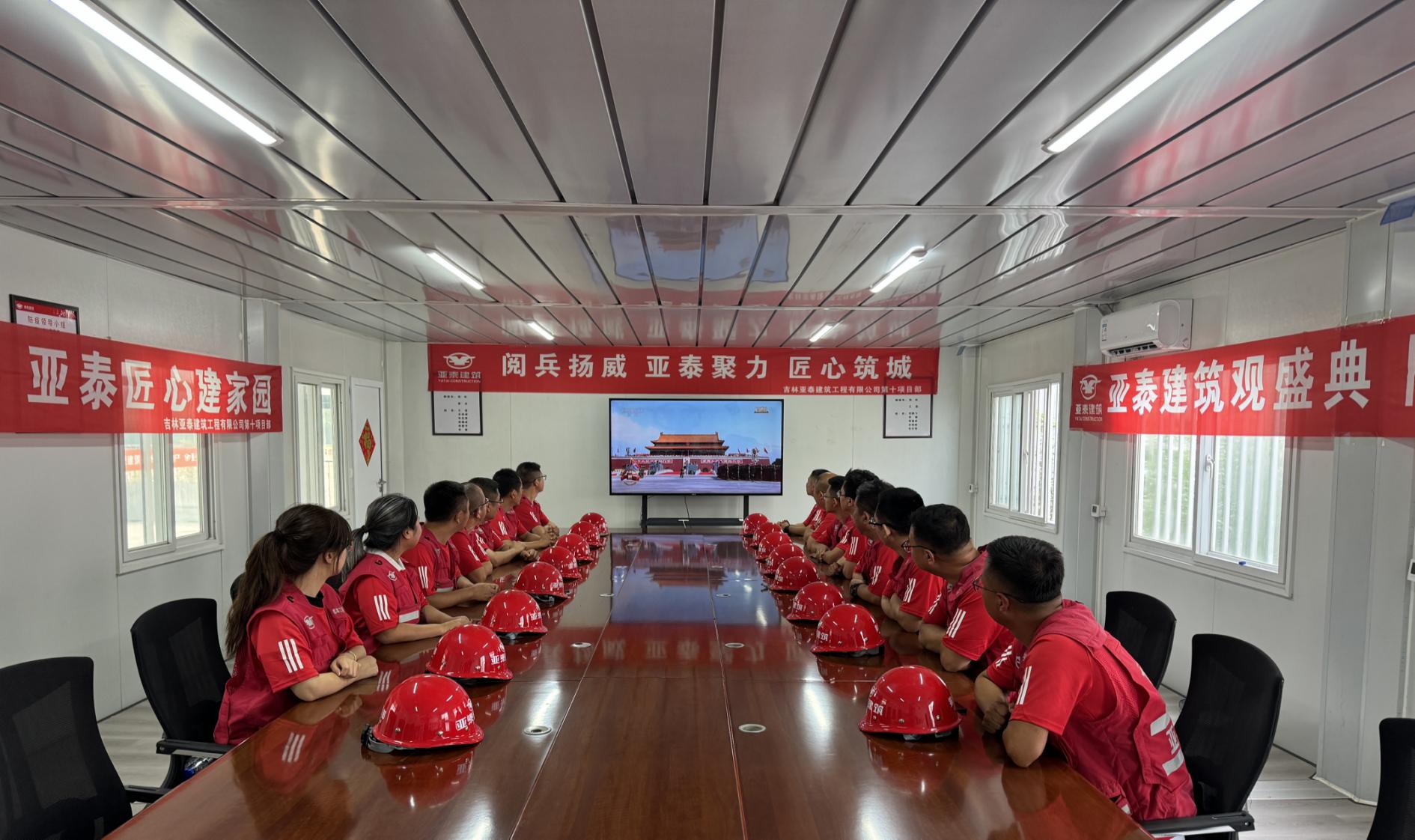 9月3日,纪念中国人民抗日战争暨世界反法西斯战争胜利 80 周年纪念活动在北京天安门广场盛大举行。亚泰建筑紧跟集团部署,组织全体员工同步观看直播,在历史回响中重温峥嵘岁月,从胜利精神中汲取奋进力量。此次活动紧扣集团“百日经营攻坚”工作要求,以爱国主义精神为引领,激励全员将满腔热忱转化为攻坚克难的实干动力,为冲刺年度经营目标注入坚定信念。
